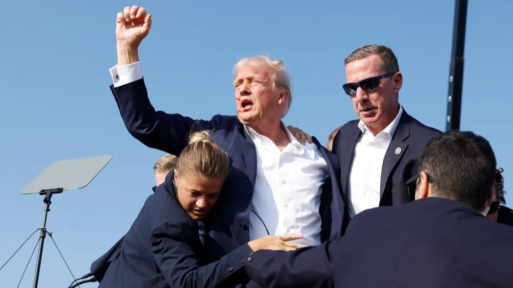 In the early evening of 13 July 2024, the world would witness one of the most heinous acts of political extremism in decades. Just minutes into Donald Trump’s speech at a rally in Butler, Pennsylvania, the sound of gunshots rang across the stage as 20-year-old Thomas Crooks opened fire on the podium, determined to assassinate the former president. Yet in a stroke of luck so remarkable that it seemed an act of divine intervention, Trump turned his head at the very last millisecond, causing Crooks’ bullet to miss his skull and pierce through the top of his right ear instead. With blood streaming across his face, Trump would shout the words “Fight! Fight! Fight!” to the crowd while heroically raising his fist against the US flag. This resulted in one of the most iconic photographs of the century, perfectly capturing the patriotism and relentless defiance that defines the MAGA movement.